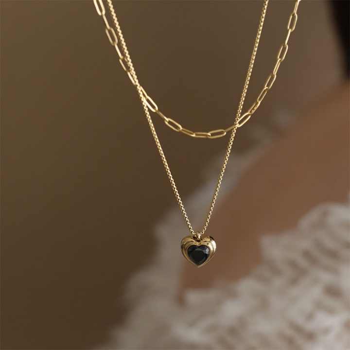 สร้อยคอทอง 18k ชุบทองคำแท้ ดีไซน์รูปหัวใจ สวยงาม ทนทานต่อการซีดจาง สร้อยคอแฟชั่นสแตนเลสสำหรับผู้หญิง