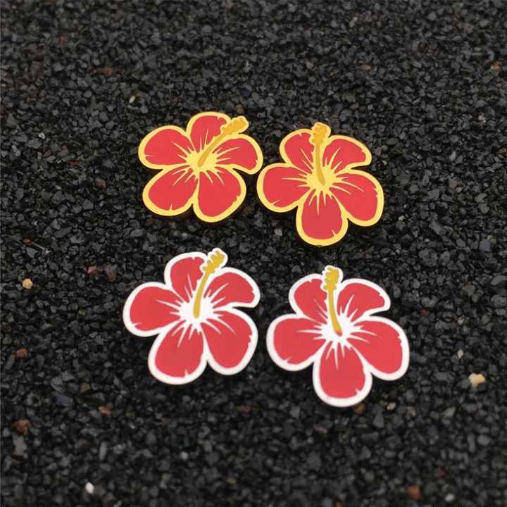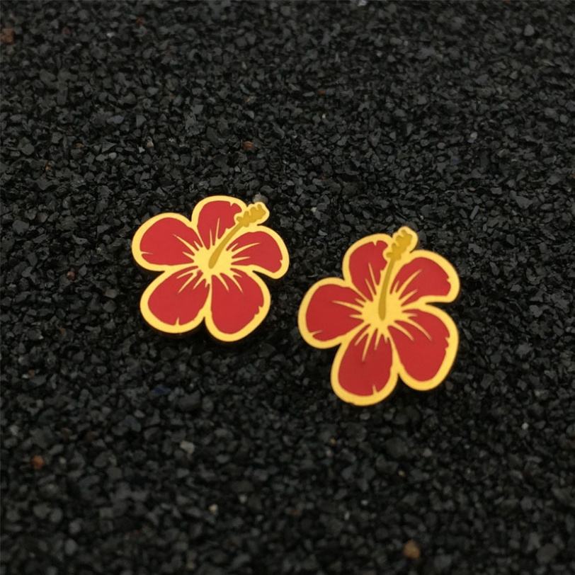 18k Gold Plated Hawaiian Style with Hibiscus Wholesale Custom Engraving Trendy Style Stainless Steel Fashion Earrings for Women