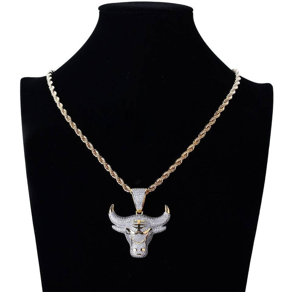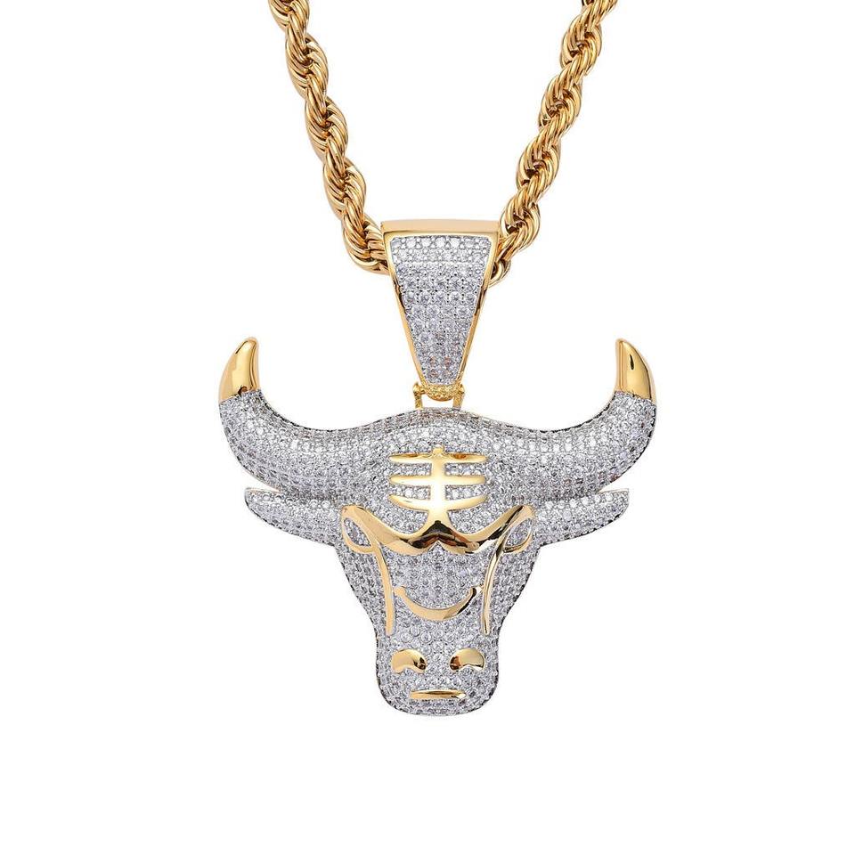 สร้อยคอจี้รูปวัวประดับเพชร CZ เกรด 5A ชุบทอง 18K สไตล์ฮิปฮอป พร้อมโลโก้สั่งทำตามแบบ
