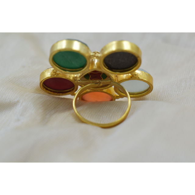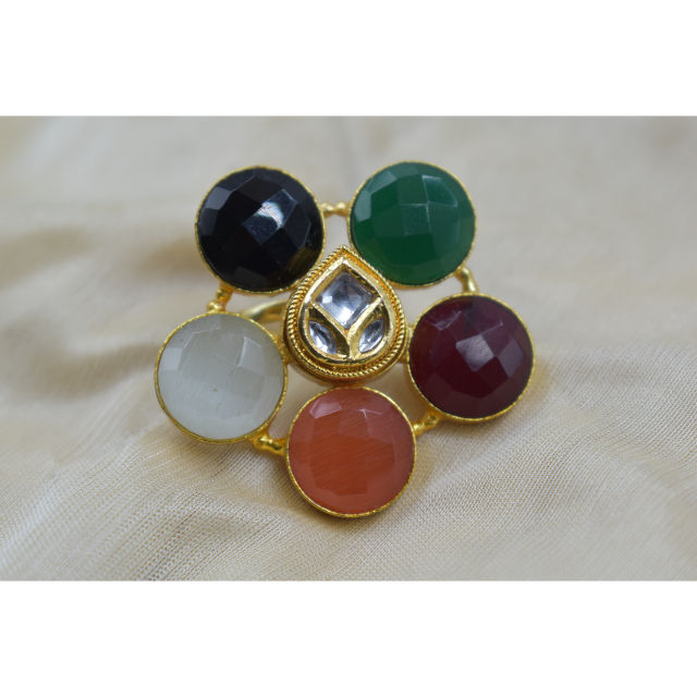 เครื่องประดับชุบทอง 18k ทองเหลืองชุบทองหินดอกไม้แหวนเครื่องประดับผู้หญิงพื้นฐานแฟชั่นเครื่องประดับแหวน