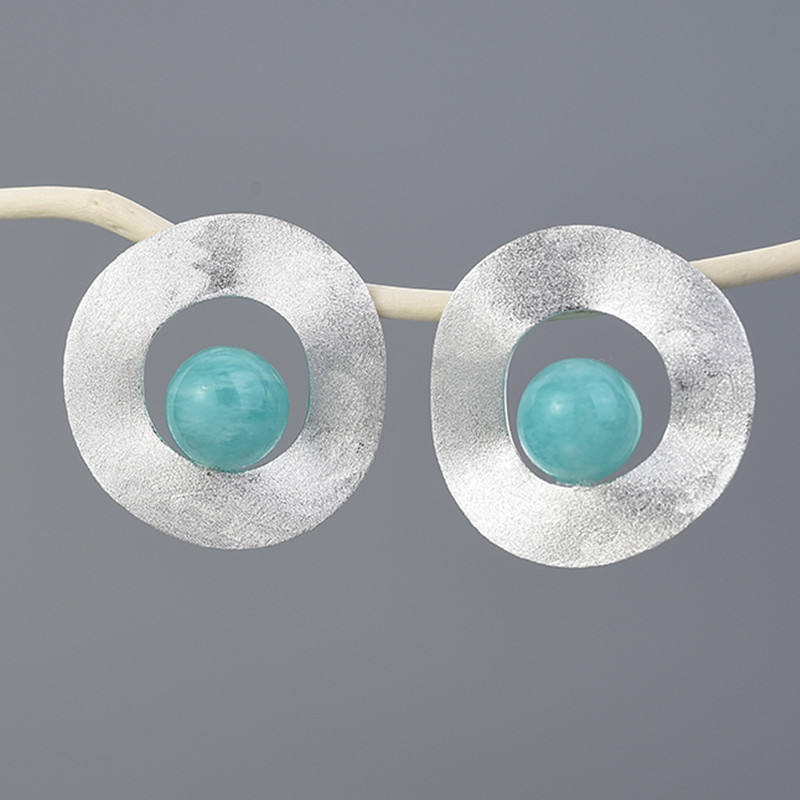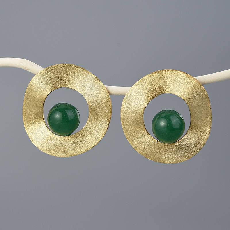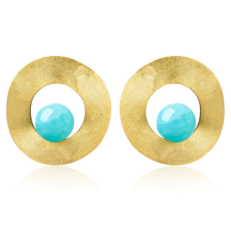 ต่างหูชุบทอง18K ทำด้วยมือจาก Lapis Amazonite Aventurine ธรรมชาติ