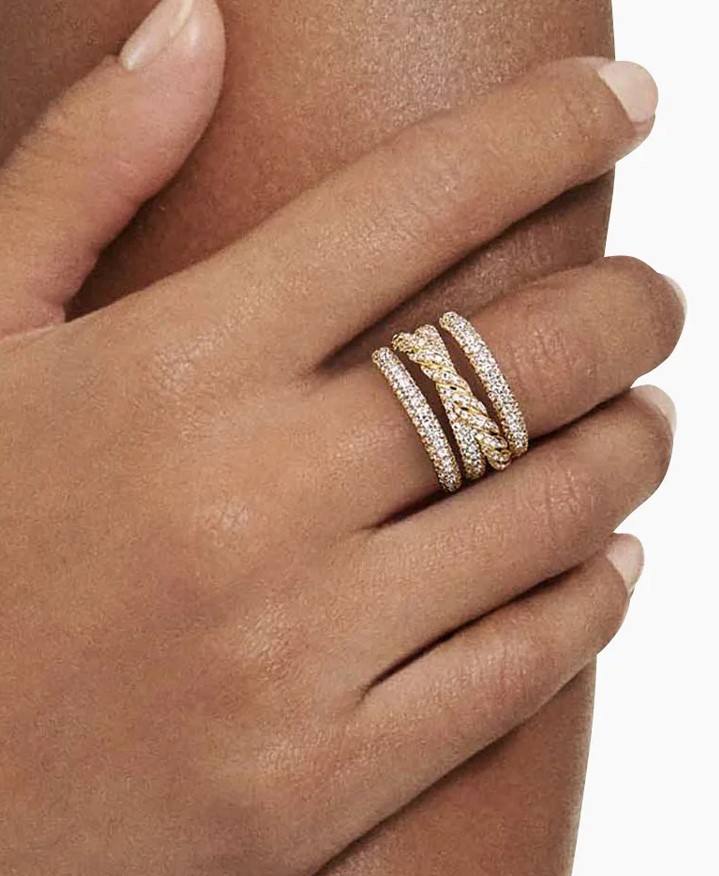 แหวนชุบทอง18K สำหรับสตรีเครื่องประดับเพชรสีขาว
