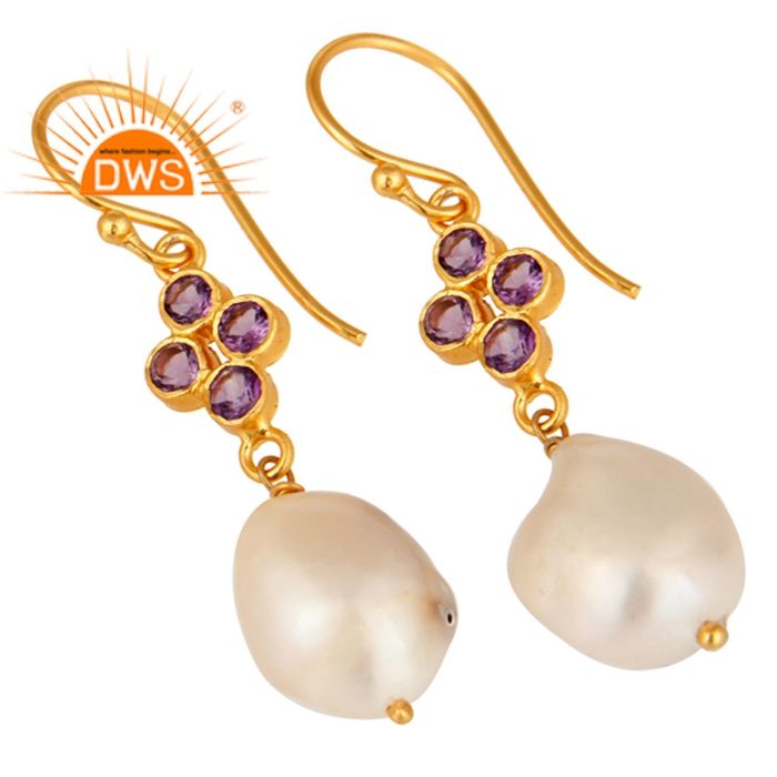 18พันทองชุบเงินตะขอต่างหูเครื่องประดับผู้ค้าส่งอเมทิสต์และมุกพลอยต่างหูเครื่องประดับผู้ผลิต