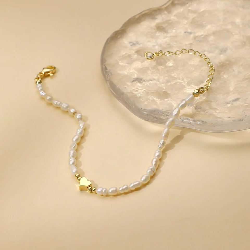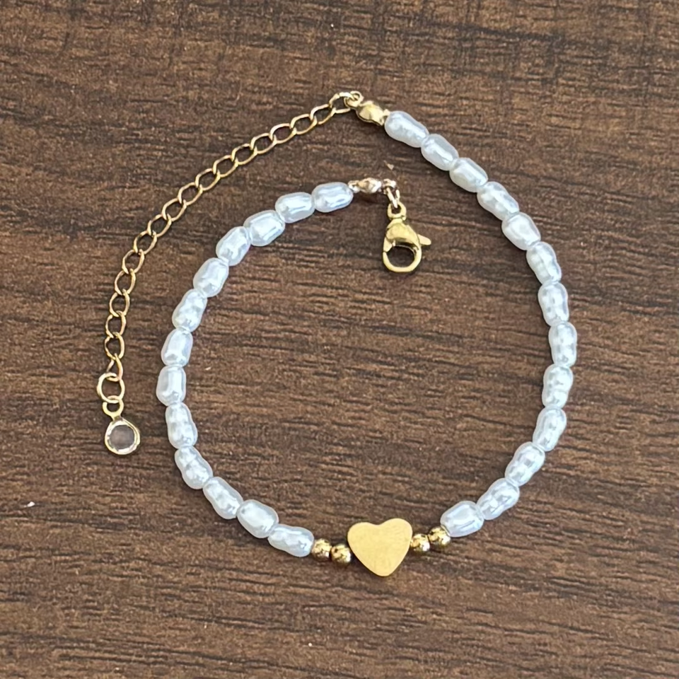 สร้อยคอลูกปัดมุกเทียมรูปหัวใจทำจากสเตนเลสชุบทอง18K สำหรับเป็นของขวัญสำหรับผู้หญิง