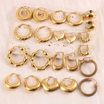 ต่างหูห่วงรูปหัวใจทรงเหลี่ยมห้าเหลี่ยมขนาดเล็ก ทอง 18k สแตนเลสสตีล ป้องกันการหมองคล้ำ ต่างหูแบบห่วงทรงเรขาคณิต