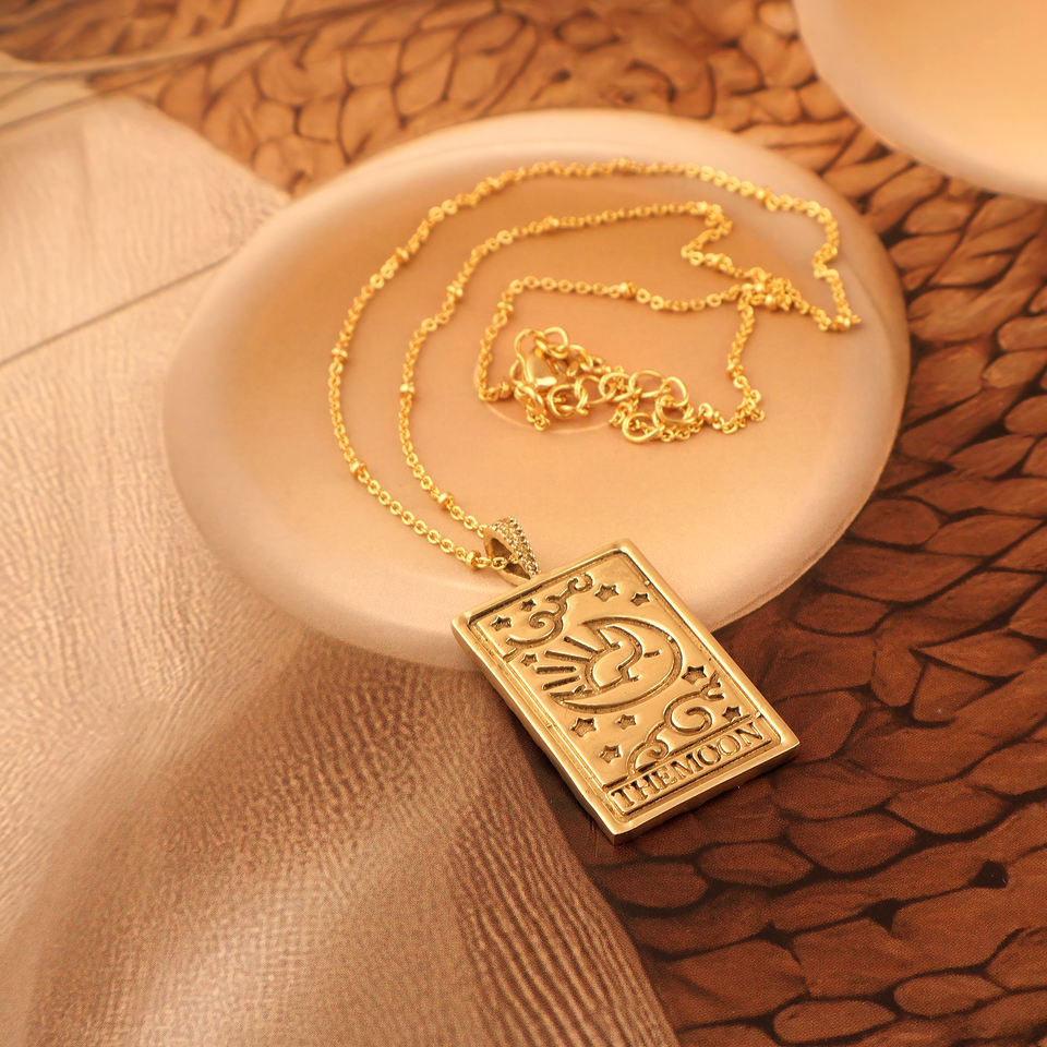 สร้อยคอไพ่ทาโรต์สีทอง18K สร้อยคอลูกปัดจี้สลักรูปดวงจันทร์พร้อมเครื่องประดับแฟชั่นปรับได้