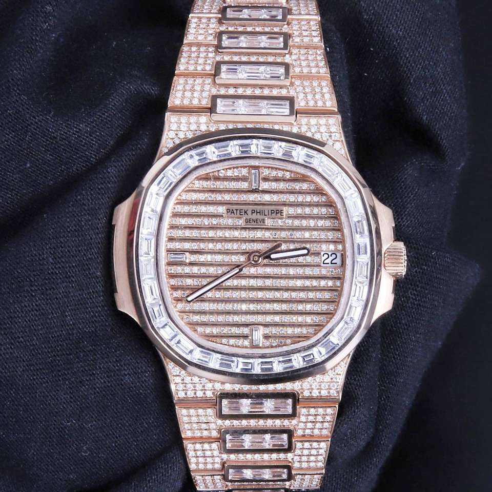 นาฬิกาข้อมือแฟชั่นผู้ชาย สไตล์ฮิปฮอป หรูหรา สายหนัง สแตนเลส ประดับเพชรโมอิสซาไนต์ ทองคำ 18k หน้าปัดกระจกแบบอนาล็อก