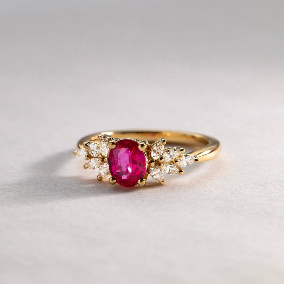 แหวนแต่งงานเพชรทอง18K แข็ง1กะรัตทับทิมเพชรเม็ดทรงวงรีตัดเพชรทรงรีแหวนเพชรธรรมชาติชั้นดี