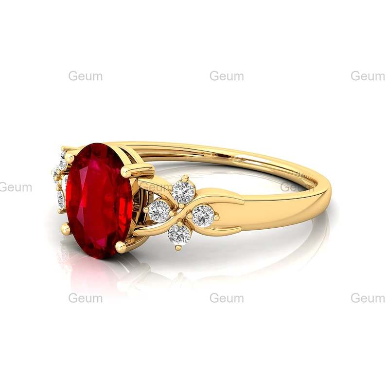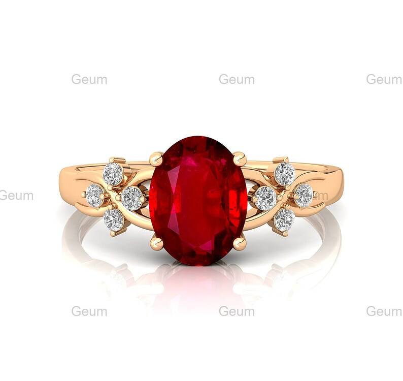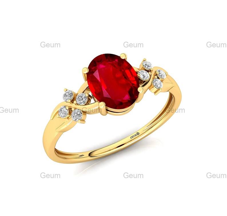 แหวนทองคำแท้ 18k ประดับทับทิมสังเคราะห์ประจำเดือนกรกฎาคม ดีไซน์แบบ Halo Solitaire พร้อมเพชรขาวแท้รับรองโดย IGI และแหวนทับทิมสังเคราะห์