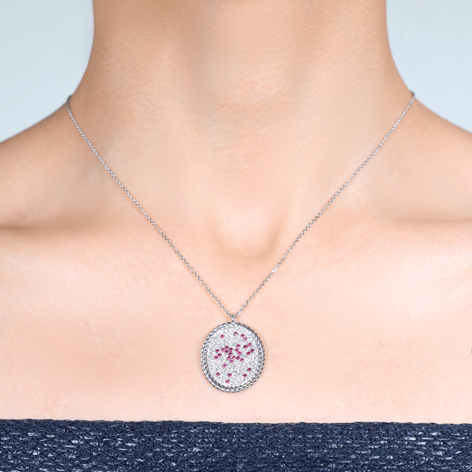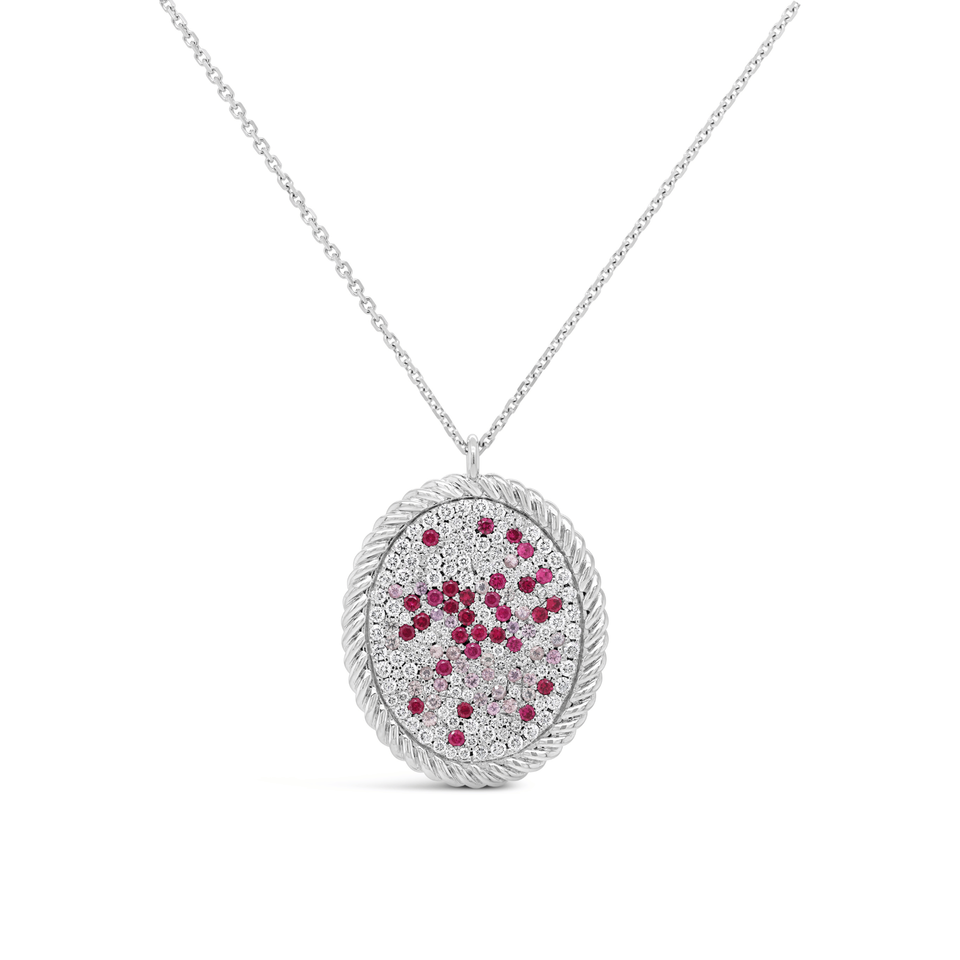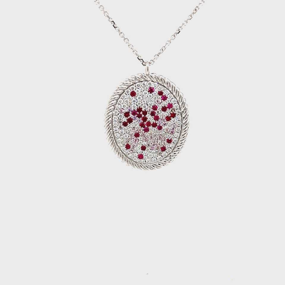 18k Solid Gold Natural Precious Gemstone Ruby Pink Sapphire With Diamond Ombre Snow Pave Cosmos Necklace Pendant Fine Jewelry