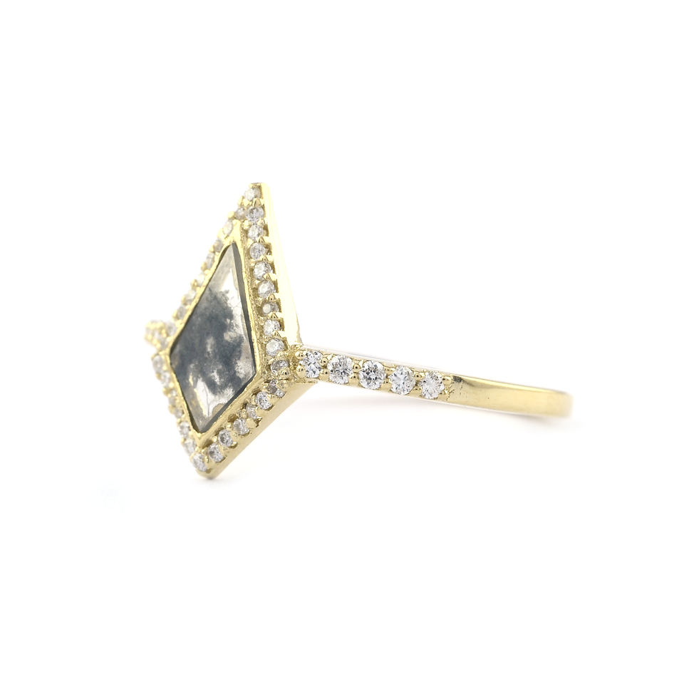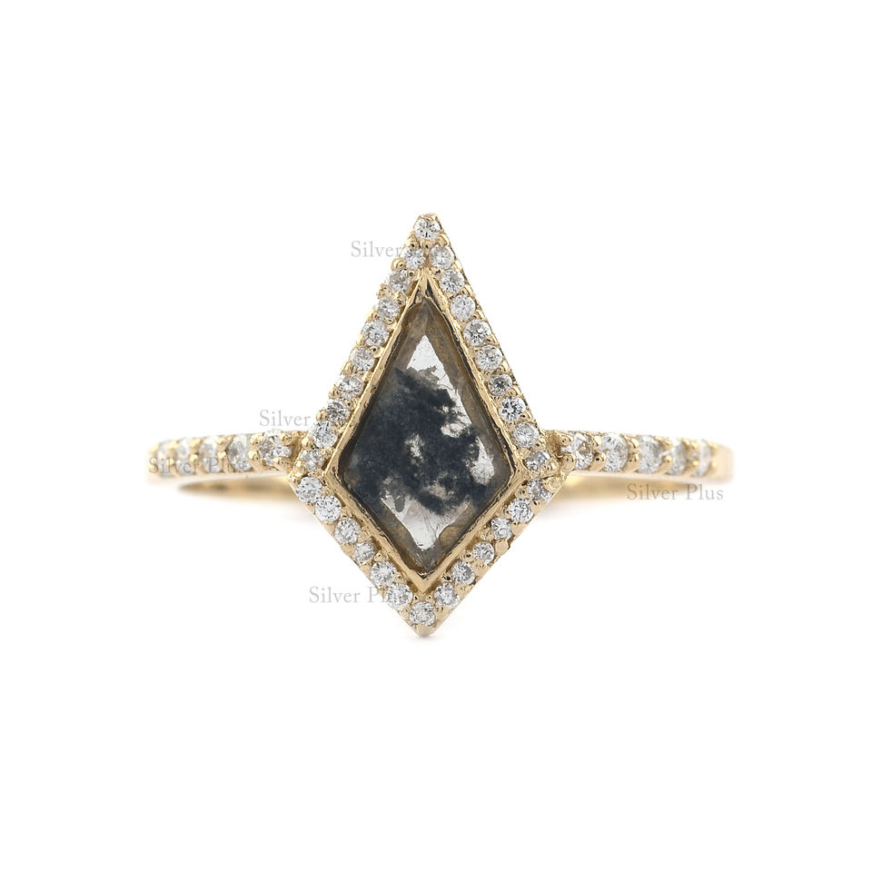 ทองคําแท้ 18k เกลือและพริกไทยเพชรรอบแหวนเพชรธรรมชาติแหวนแต่งงานคลาสสิกวินเทจ