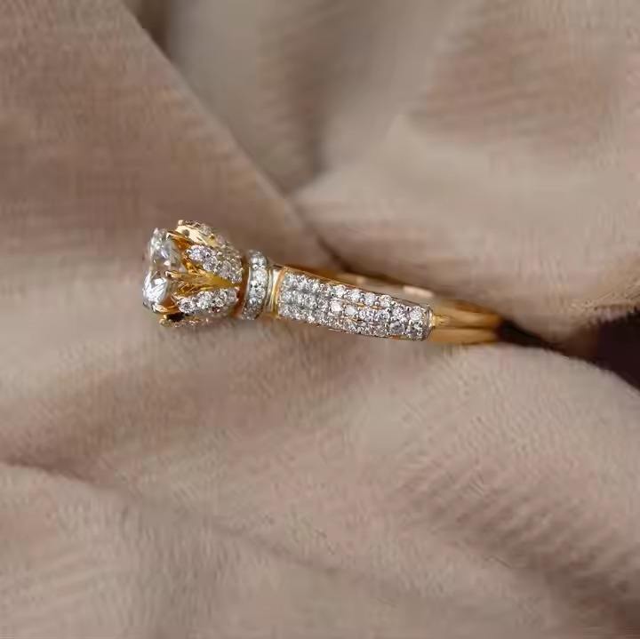 18k Solid Yellow Gold Flower Designer Halo Ring VS1 Lab Grown Diamond Halo Ring For Anniversary Gift Perfect For Proposer Gift