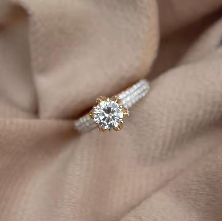 แหวนฮาโลเพชรสำหรับงานแต่งงานดีไซน์เนอร์ลายดอกไม้สีเหลืองทอง18K VS1ในห้องปฏิบัติการสำหรับเป็นของขวัญวันครบรอบเหมาะสำหรับเป็นของขวัญ