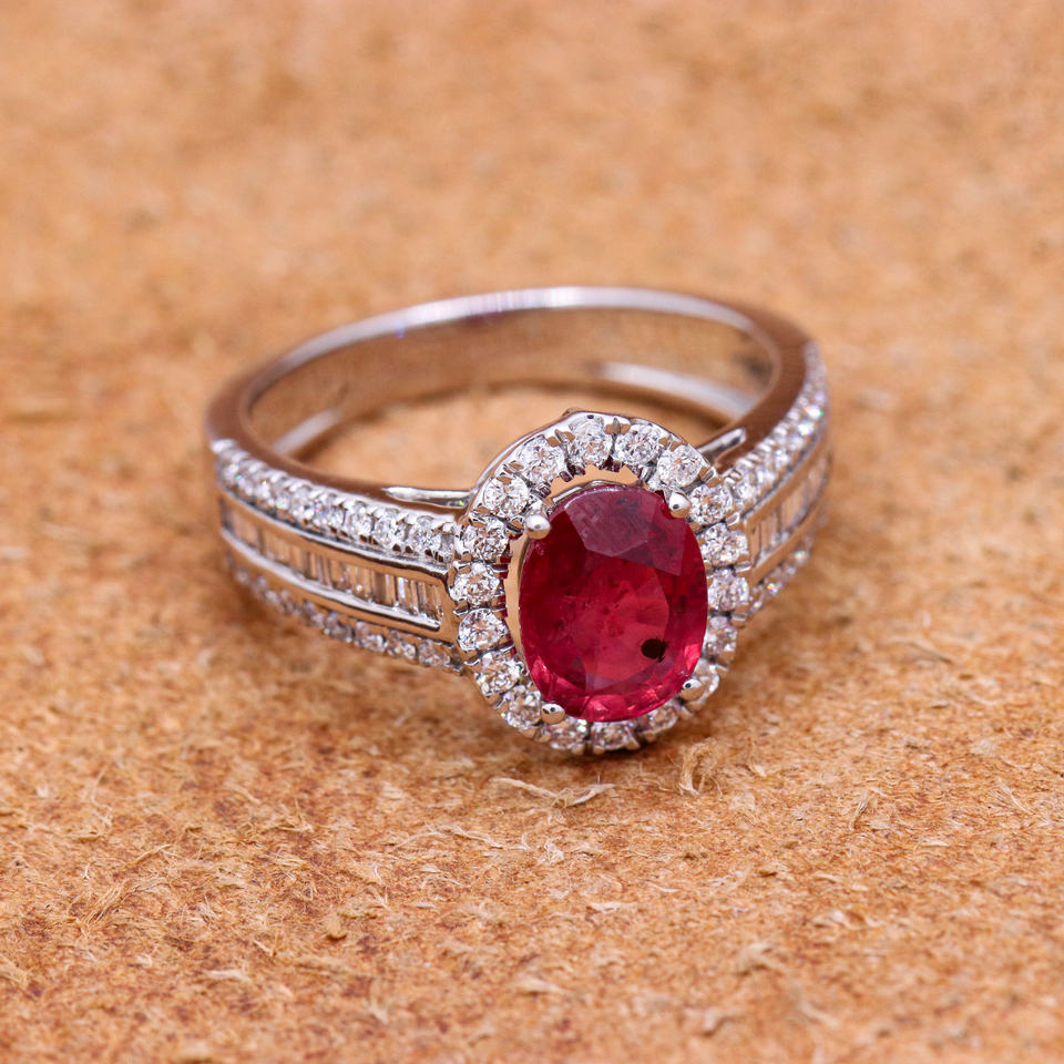 ทองคําขาว 18k อัญมณีทับทิมมีค่าพร้อมเพชร แหวนทองคําขาว เครื่องประดับเพชรธรรมชาติสําหรับผู้ค้าส่ง