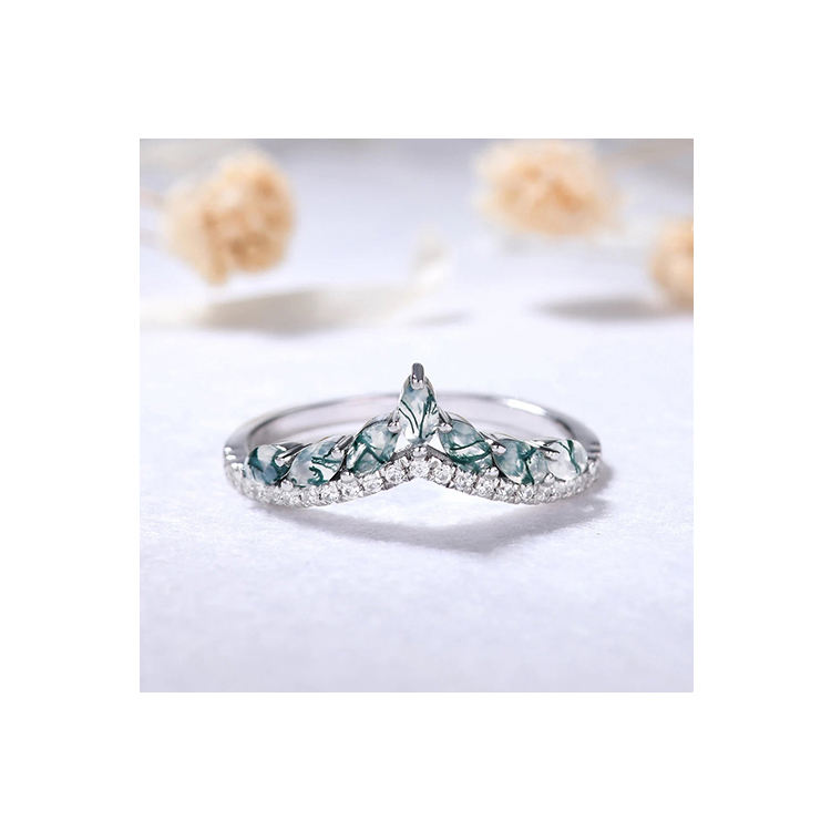 แหวนทองแข็งลายมอสหรูหราดีไซน์ใหม่แหวนทองชั้นดีพร้อมแหวนเพชรแท้18kt
