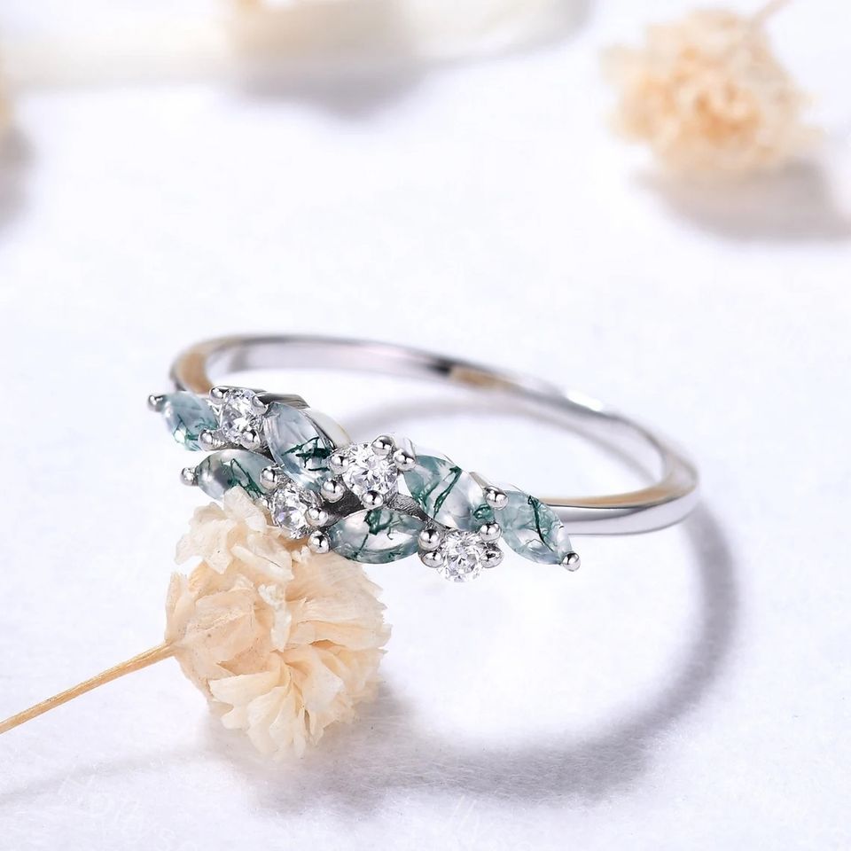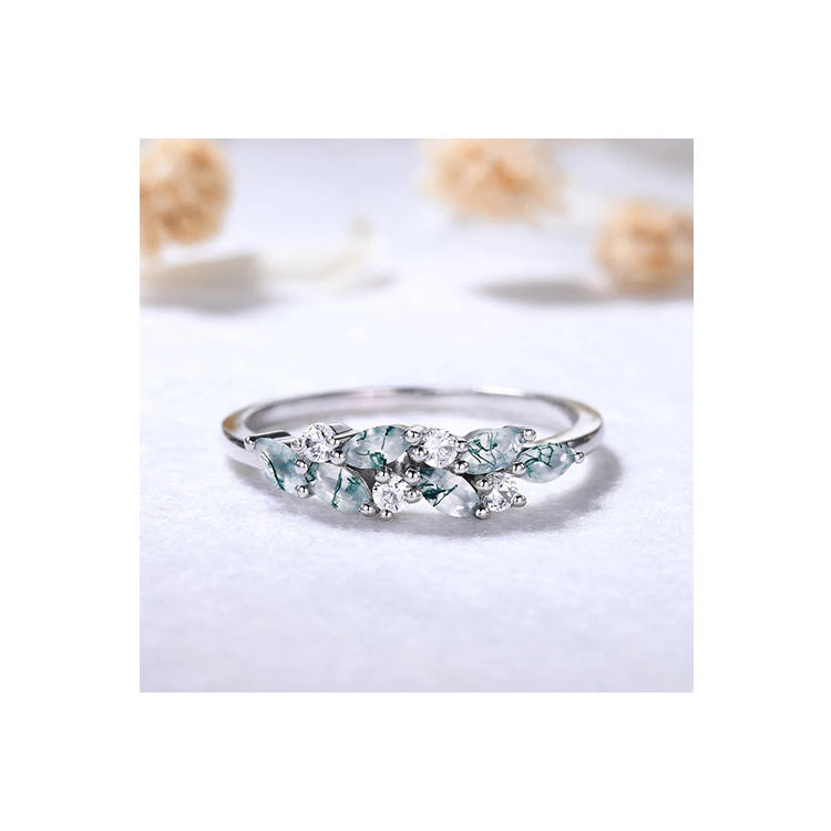 แหวน18kt สีโรสโกลด์หรูหราดีไซน์ใหม่ทำจากหินโมรามอสสีทองชั้นดีพร้อมแหวนเพชรแท้