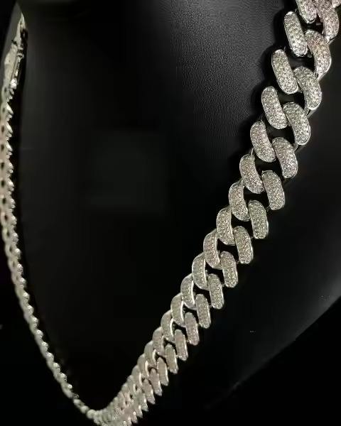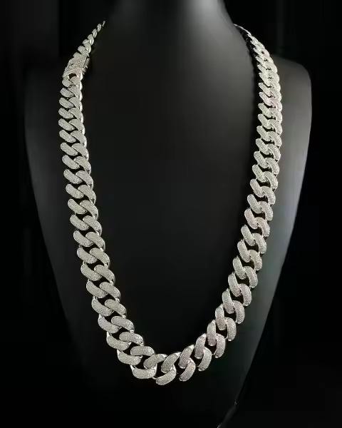 สร้อยคอโซ่ไมอามี่18มม. แนวฮิปฮอป925สเตอลิงสีเงินสีขาวชุบทอง VVS เพชรโมอิสซาไนต์สุดหรูทันสมัย