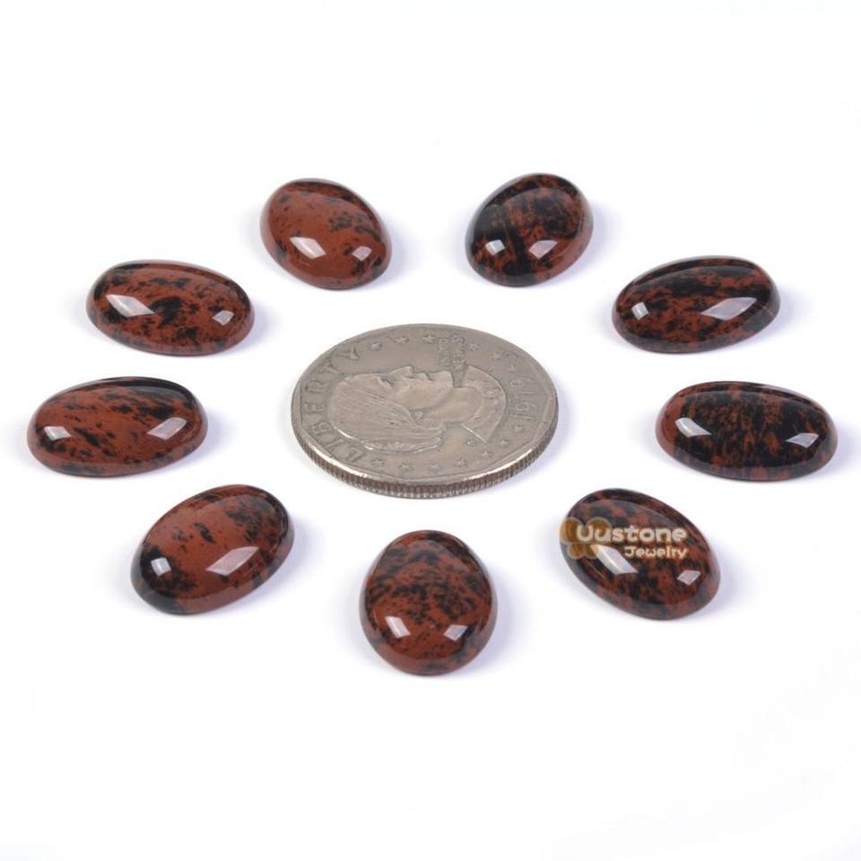 พลอยมะฮอกกานีออบซิเดียนสีน้ำตาลธรรมชาติขนาด 18 มม. รูปไข่ทรงคาโบชอง ได้รับการรับรอง สำหรับทำเครื่องประดับ