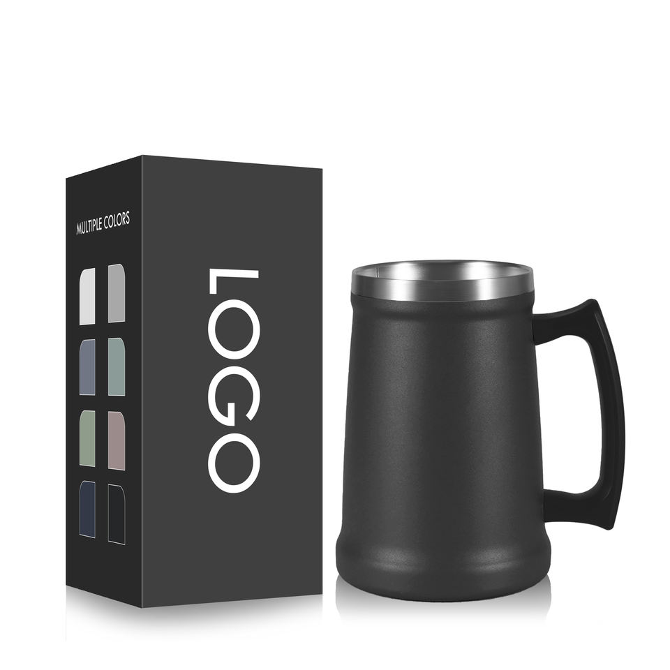 แก้วมัคสแตนเลสเก็บความร้อนความเย็นสองชั้น ขนาด 18 ออนซ์ 24 ออนซ์ 32 ออนซ์ พร้อมหูจับ สำหรับกาแฟ เบียร์ และเครื่องดื่มอื่นๆ
