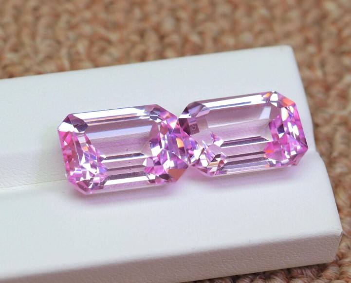 พลอยแซฟไฟร์สีชมพูทรงเหลี่ยมขนาด 18x13 มม. - พลอยแซฟไฟร์สีชมพูสังเคราะห์สำหรับทำเครื่องประดับชั้นดี