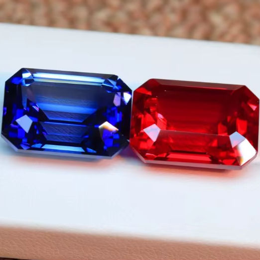 ไพลินสีน้ำเงินเพาะเลี้ยงในห้องปฏิบัติการขนาด 18x13 มม. ทับทิมเจียระไนทรงสี่เหลี่ยม - อัญมณีสังเคราะห์คุณภาพสูง