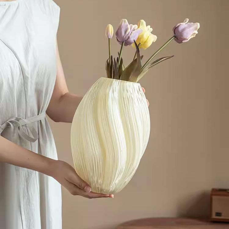 แจกันแก้วลายทางอาร์ตเดโคขนาด 18x27 ซม. แบบเรืองแสง เป็นมิตรกับสิ่งแวดล้อม ทำด้วยมือ ตกแต่งดอกไม้สวยงาม