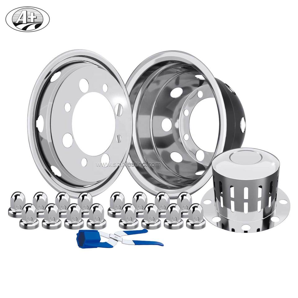 19.5 inch Truck Wheel Cover Simulator T304 Stainless Steel For Dual Rear Trucks Buses Wholesaler Grade Nut Cover Included