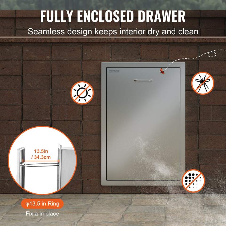ลิ้นชักเก็บถุงขยะสแตนเลสสำหรับใช้งานกลางแจ้ง ขนาด 19.7 นิ้ว x 26.5 นิ้ว พร้อมห่วงดึง สำหรับเตาบาร์บีคิว อุปกรณ์เสริมสำหรับเตาปิ้งย่าง