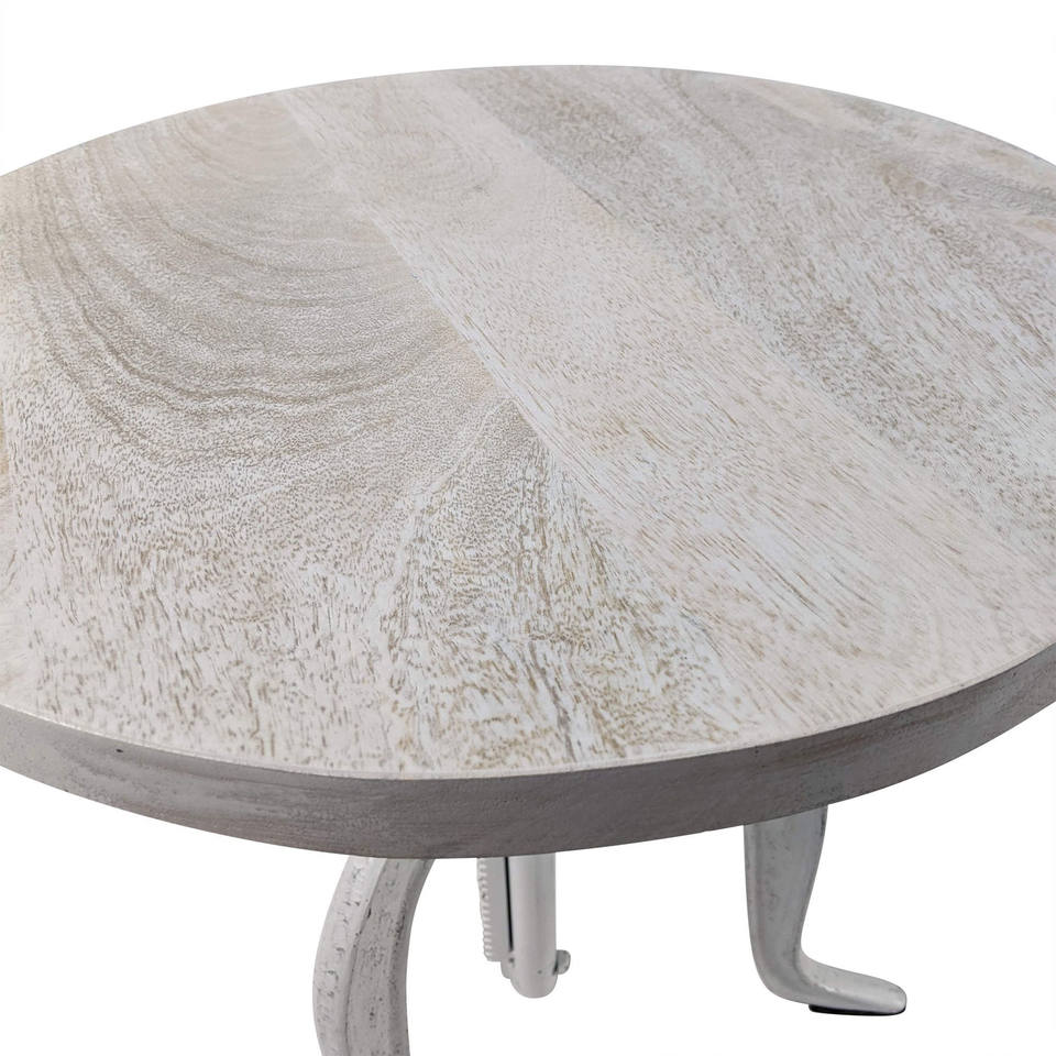 19-Inch HMS Round End Table White Solid Wood and Iron Height Adjustable Coffee Tables