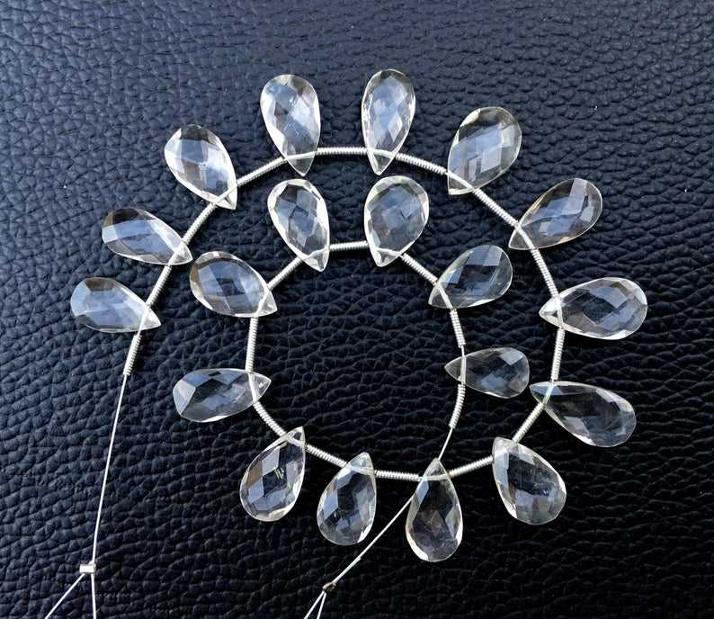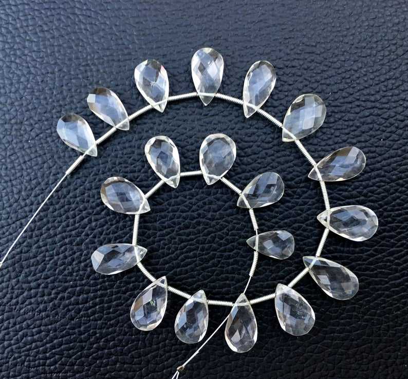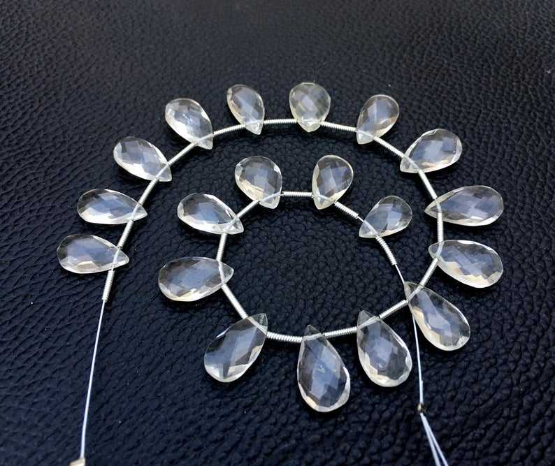 ลูกปัด Briolette ทรงลูกแพร์แบบเหลี่ยมเพชรพลอยควอตซ์ใสธรรมชาติเกรด AAA 19ชิ้นลูกปัดคริสตัลไม่มีสีทำสีขาวแบบ DIY