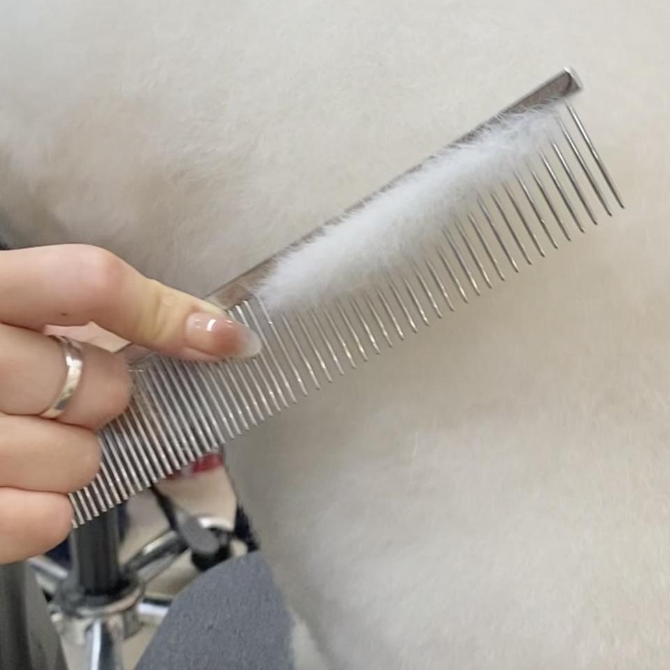 หวีสแตนเลสสีเงินขนาด 190 มม. เป็นมิตรกับสิ่งแวดล้อม พร้อมซี่หวีแบบแคบและกว้าง สำหรับสุนัขและแมว - อุปกรณ์กรูมมิ่ง