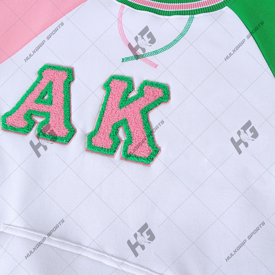 เสื้อสเวตเชิ้ตอัลฟ่า แคปป้า อัลฟ่า รุ่นปี 1908 สีชมพู-เขียว แบบคัลเลอร์บล็อก ผ้าฟลีซ สำหรับสมาชิกสมาคมนักศึกษาหญิง