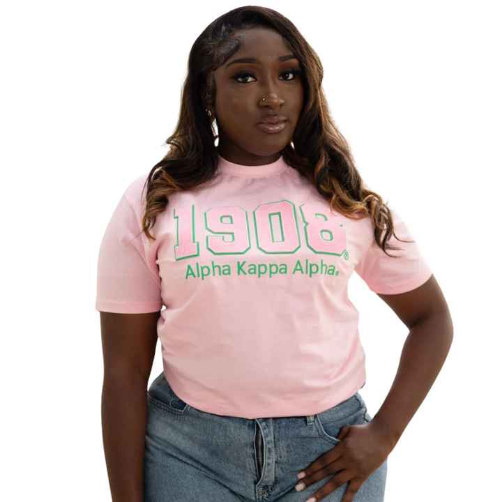 1908 เสื้อยืดผู้หญิงลายกรีก เสื้อยืดโลโก้คลาสสิก ผ้าฝ้ายพรีเมียม สวมใส่สบายๆ มีสไตล์ ใส่ได้ทุกวัน