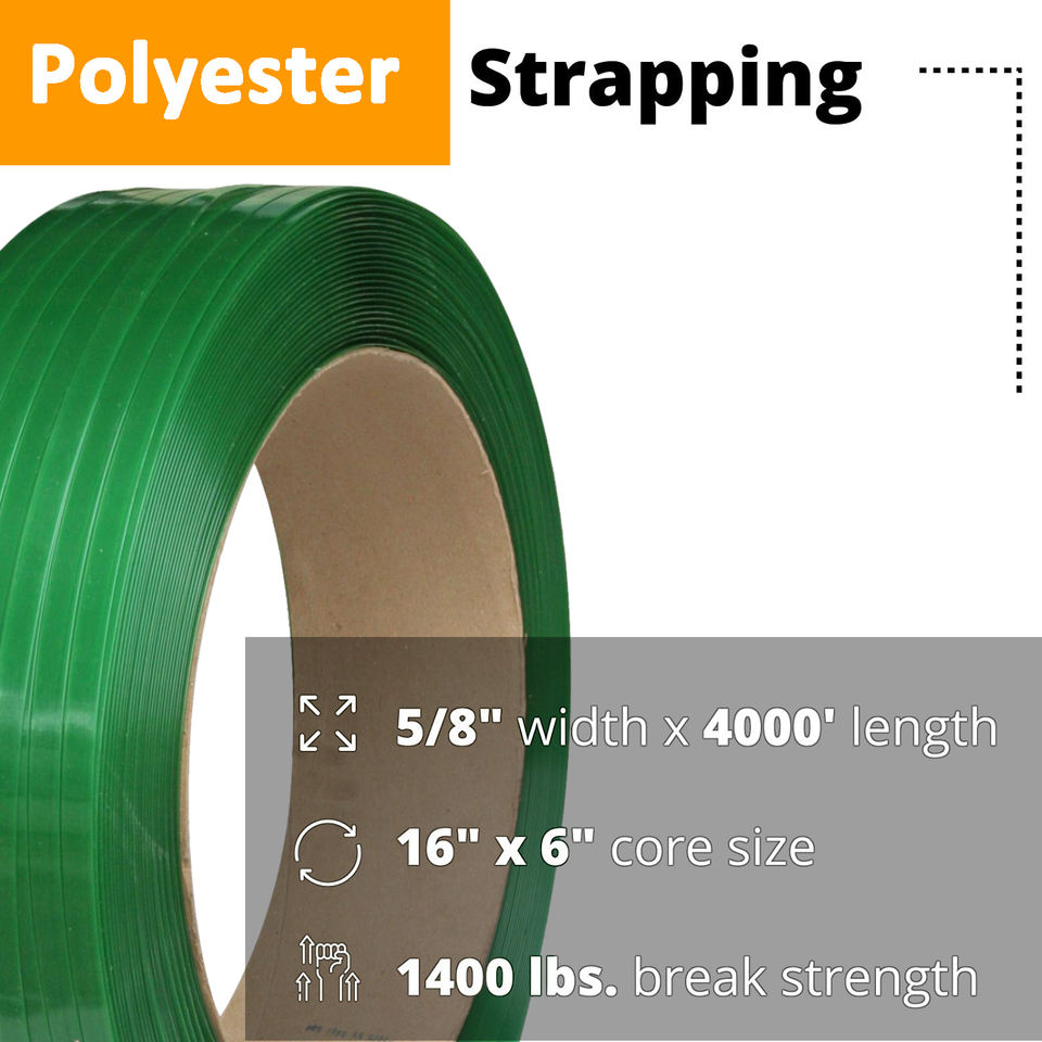 ม้วนพลาสติกสีเขียวแบบอัตโนมัติ ปี 1910 สำหรับรัดสินค้า ผลิตจากพลาสติก PET ได้รับการรับรองจาก STEK AAR ขนาด 34 นิ้ว สำหรับการบรรจุภัณฑ์และมัดรวมสินค้าบนพาเลท