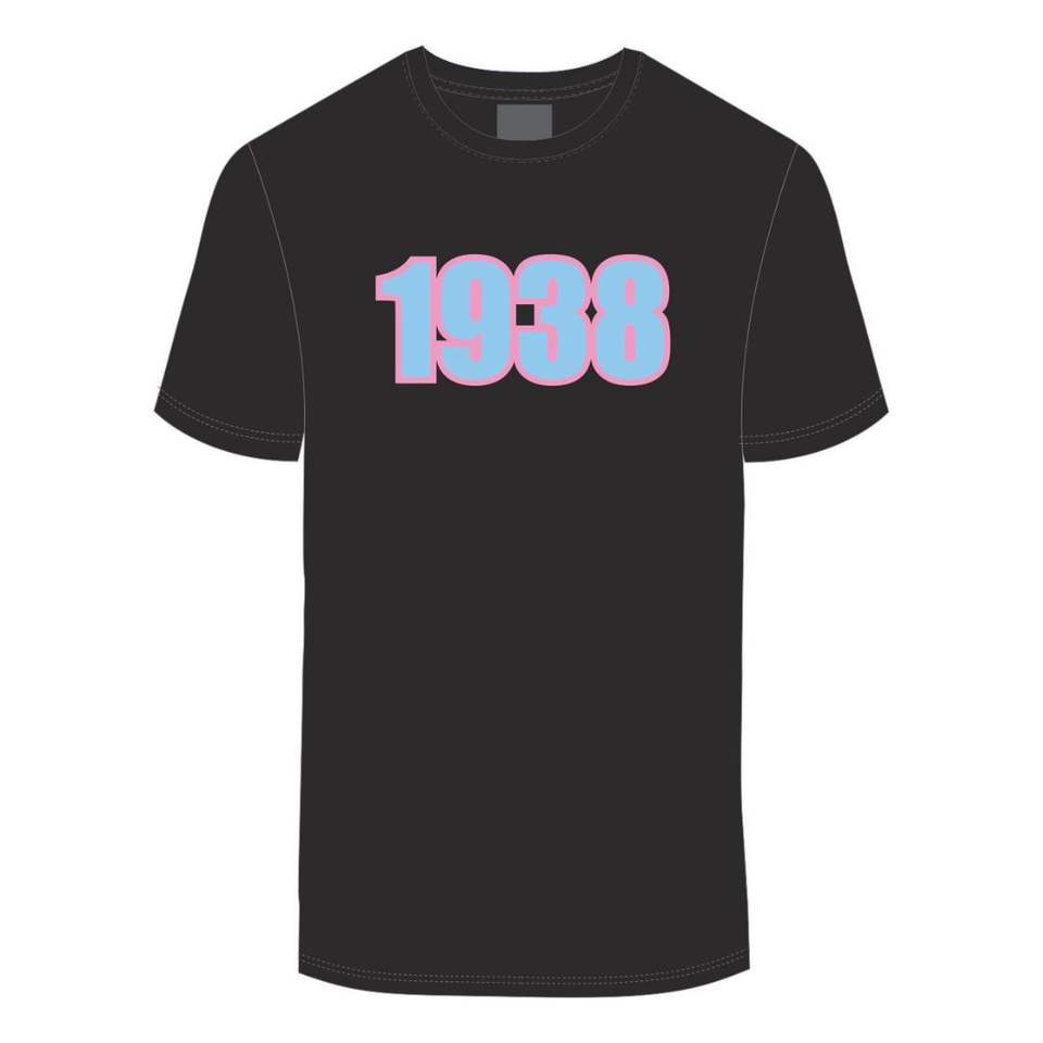 1938 Jack and Jill of America Black Cotton T Shirt Blue Chenille Embroidery Black and Civic Professional Organizations Apparel