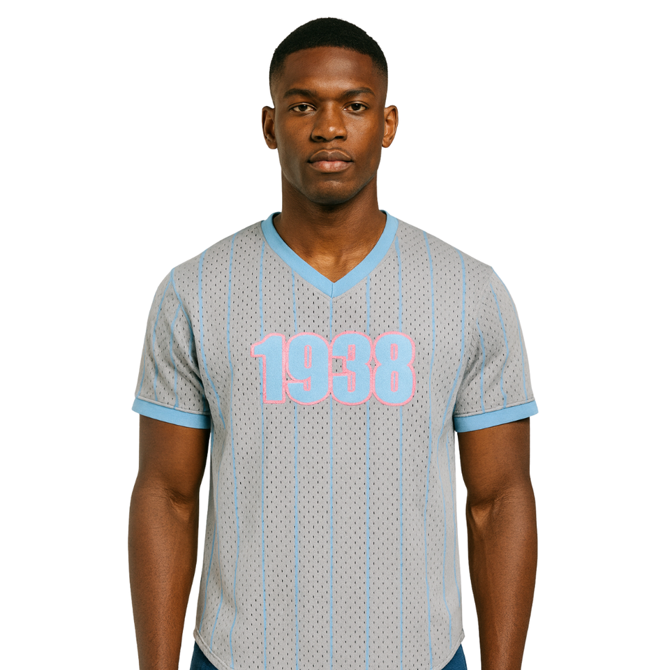 1938 Jack and Jill of America Grey Pinstripes Pullover Baseball Jersey Black Civic Professional Organizations Tee Mesh T Shirt