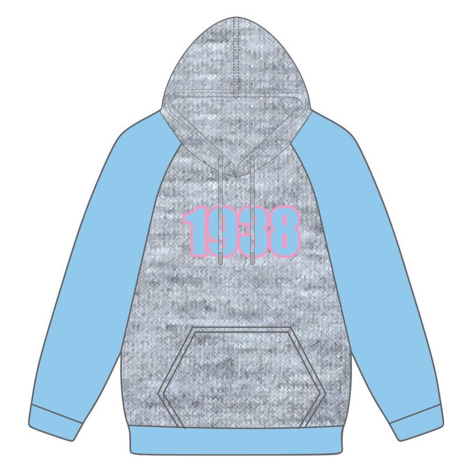 1938แจ็คและจิลล์ของอเมริกาแขนแร็กแลนสีเทาสีเทาเสื้อมีฮู้ดผ้ากำมะหยี่สีฟ้าปักลายสำหรับองค์กรพลเรือนและมืออาชีพสีดำ