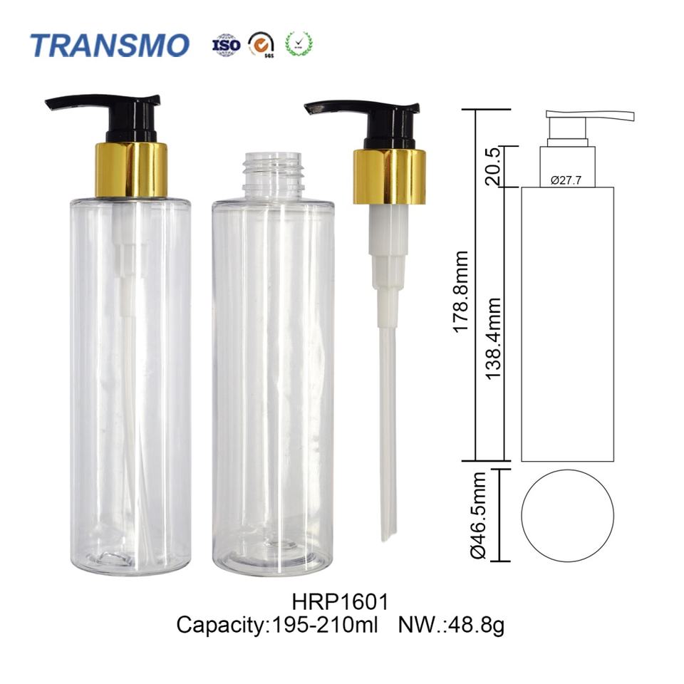 ขวดเซรั่มใสทรงกระบอก 195-210 มล. สำหรับครีมบำรุงผิว เซรั่มบำรุงผิว ขวดโลชั่นแบบกำหนดเอง เป็นมิตรกับสิ่งแวดล้อม