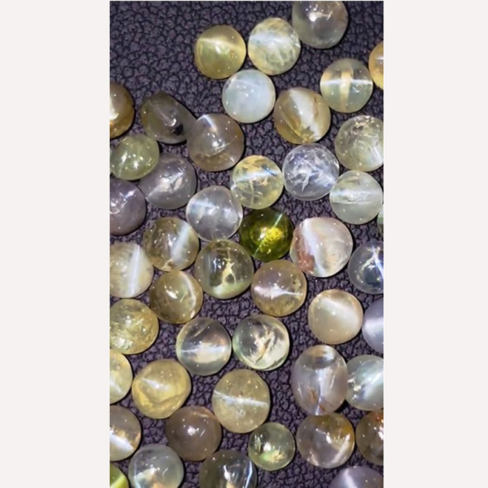 คริสโซเบอรีลแคทอายธรรมชาติ 197 ชิ้น ขนาด 3 4 5 มม. ทรงกลมแบบคาโบชอง น้ำหนัก 84 กะรัต ขายส่ง Iroc คุณภาพสูง พลอยหลวม ราคา 202 ดอลลาร์สหรัฐ สำหรับทั้งหมด