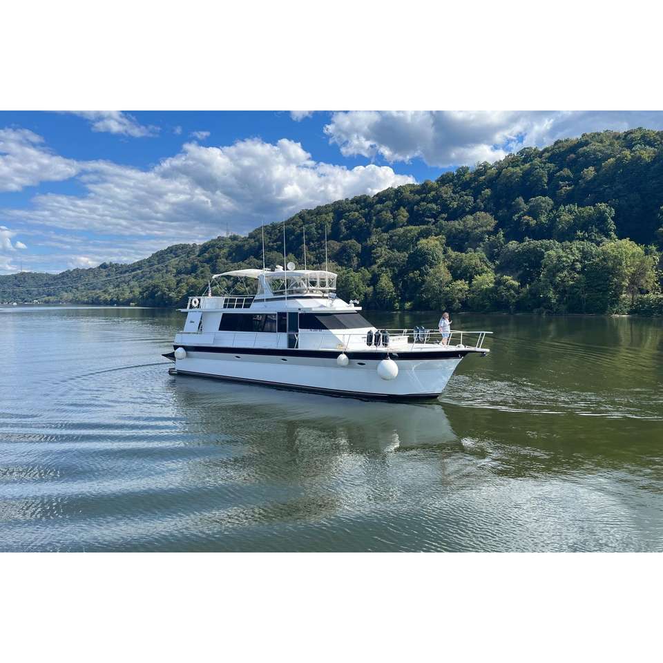 เรือตกปลาสปอร์ตไฟเบอร์กลาส Pluckebaum 60 ปี 1997 เครื่องยนต์ Caterpillar คู่ ความเร็ว 30-35 นอต สำหรับเดินทางในแม่น้ำ