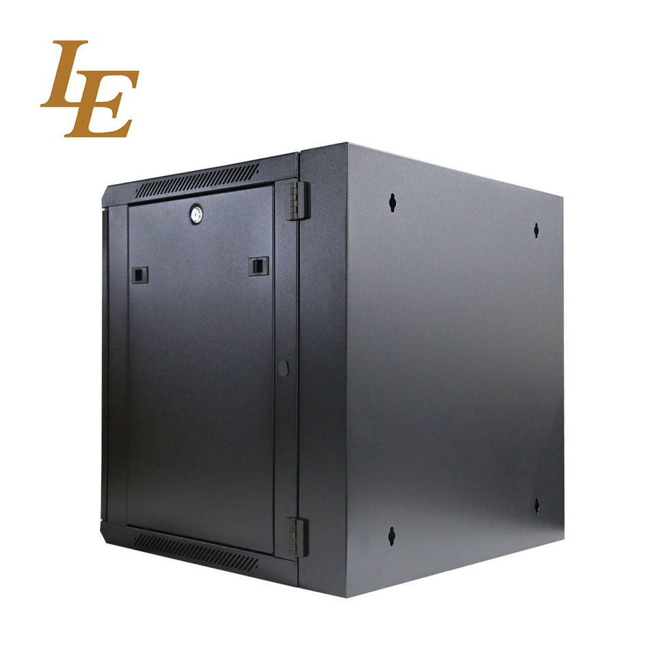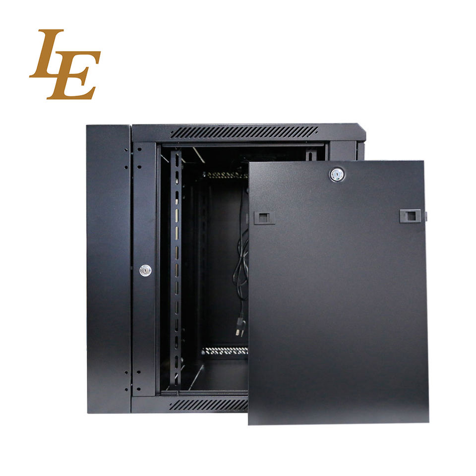 ตู้ติดผนังแบบแบนขนาด 19 นิ้ว แบบสองบานเปิด RAL9004 สีดำ พร้อมแผงด้านข้างถอดออกได้ ผลิตจากเหล็ก SPCC มีสินค้าในสต็อก