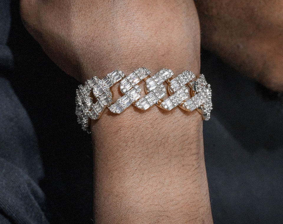 19MM Solid 925 Silver Hip Hop Cuban Link Chain Bracelet 18K Gold Plated with Studded VVS1 Moissanite Diamond Passes Tester