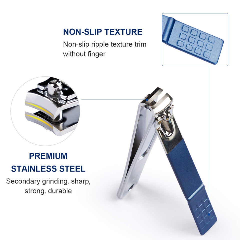 ชุดเสริมสวยเล็บแบบยูนิเซ็กส์แบบมืออาชีพ19ชิ้นกรรไกรตัดเล็บสเตนเลสสตีลพรีเมียมเครื่องมือดูแลเล็บสุดหรูสีฟ้า