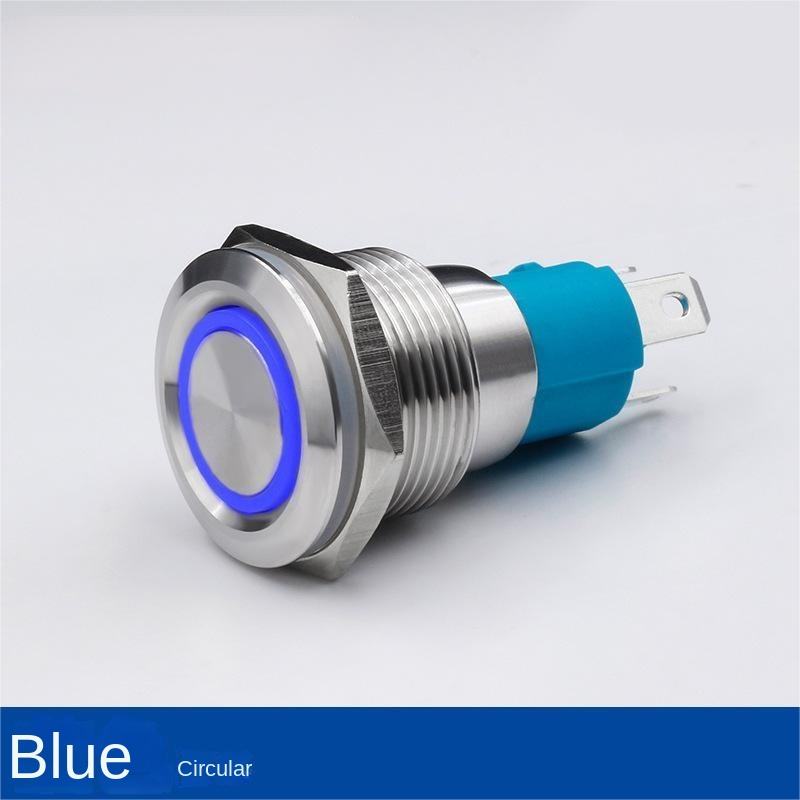 สวิตช์ไฟแบบกดพร้อมไฟวงแหวน ขนาด 19 มม. 220V 3A ทรงกลม LED IP65 สแตนเลสสตีล แบบกดติดปล่อยดับ 1NO1NC 50000 รอบ พร้อมปุ่มกด
