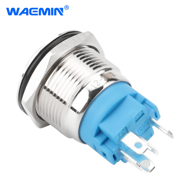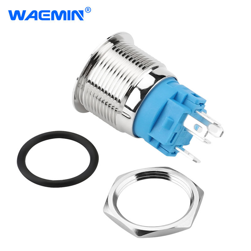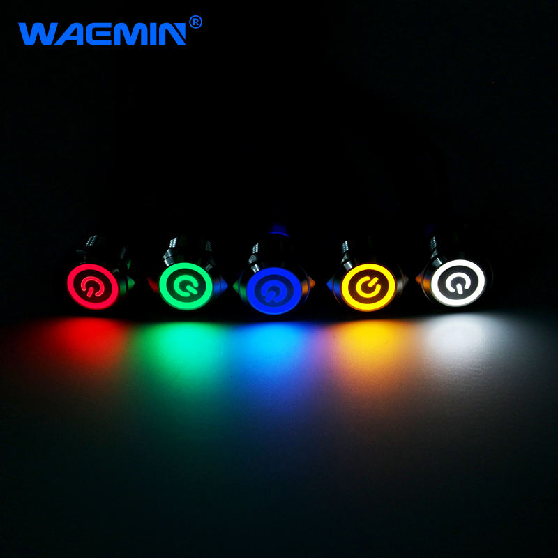 แผงสวิทช์ปุ่มโลหะ19มม. วงแหวนสีแดงสัญลักษณ์เปิดปิด3-6V หัวแบนล็อคประตูรถ5ขา