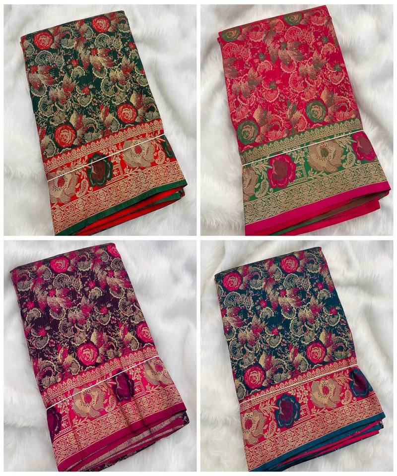 ชุดส่าหรีผ้าไหมแบบนิ่มลายดอก1ชิ้น