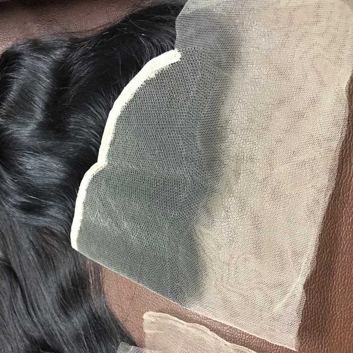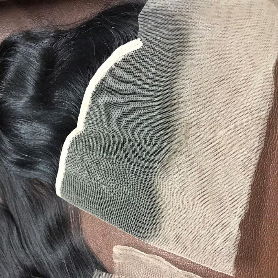 1B สีธรรมชาติลูกไม้ด้านหน้าอินเดียมนุษย์ผมที่ยังไม่ได้ HD โปร่งใสลูกไม้หยักด้านหน้าชิ้น