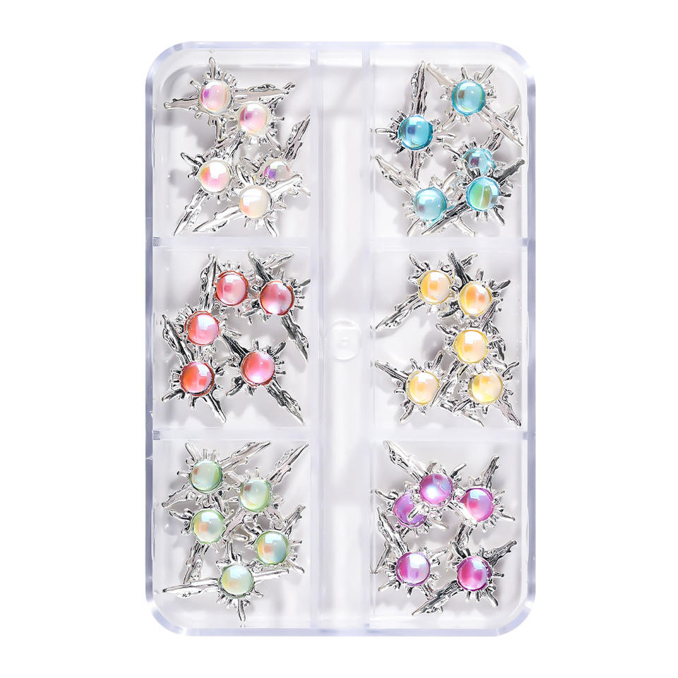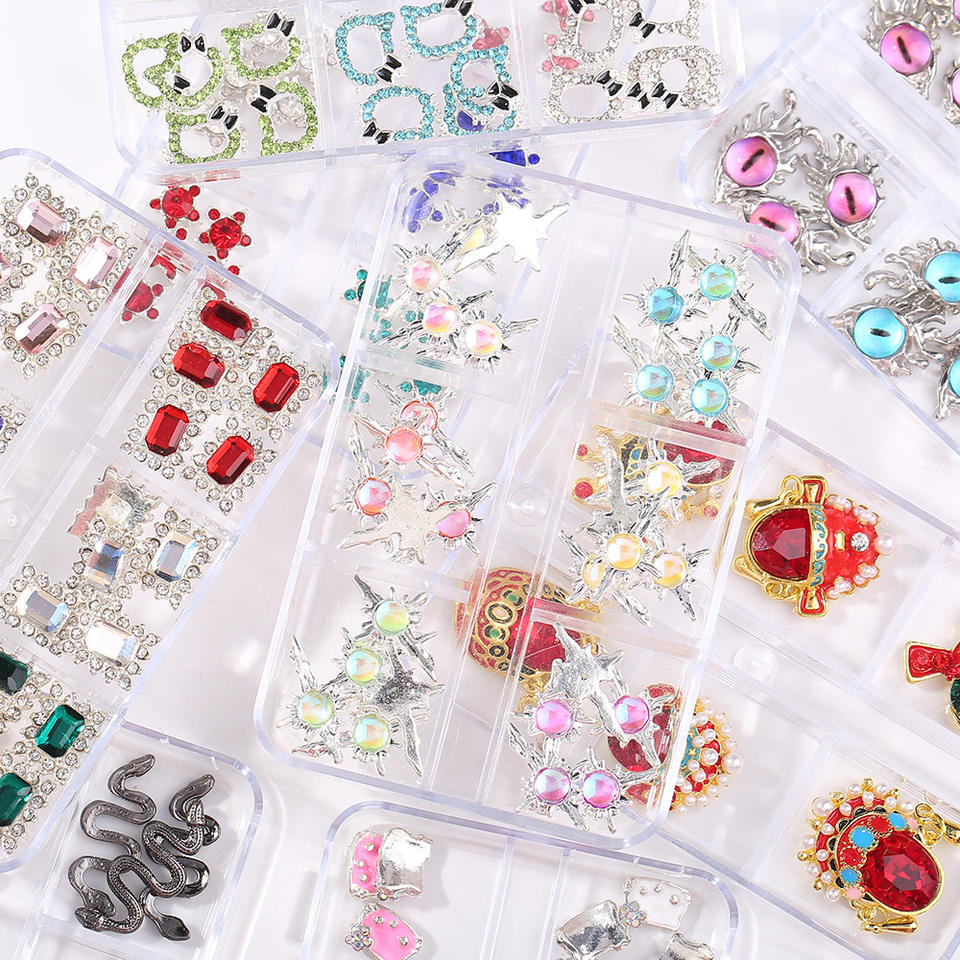 พลอยเทียมตกแต่งเล็บ1กล่องเครื่องประดับโลหะอัลลอยรูปหัวใจเชอร์รี่สุดหรูมีเสน่ห์เล็บแก้วคริสตัลเพชรสำหรับทำเล็บแบบทำมือ