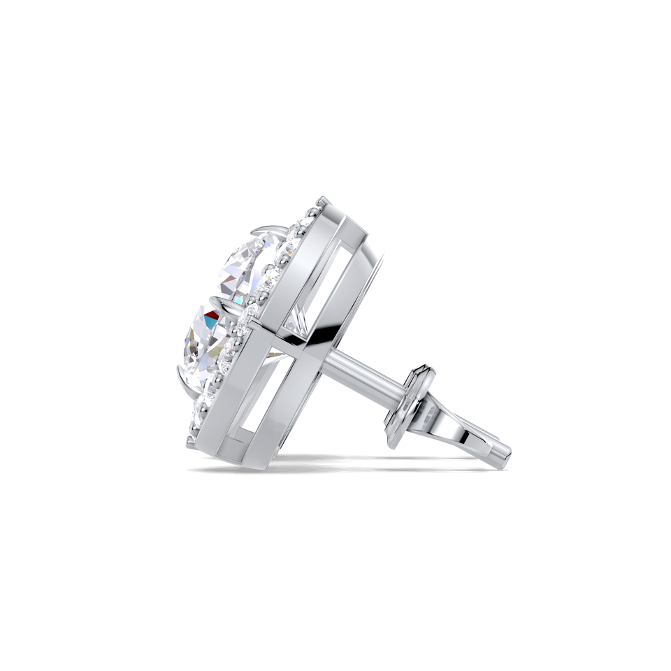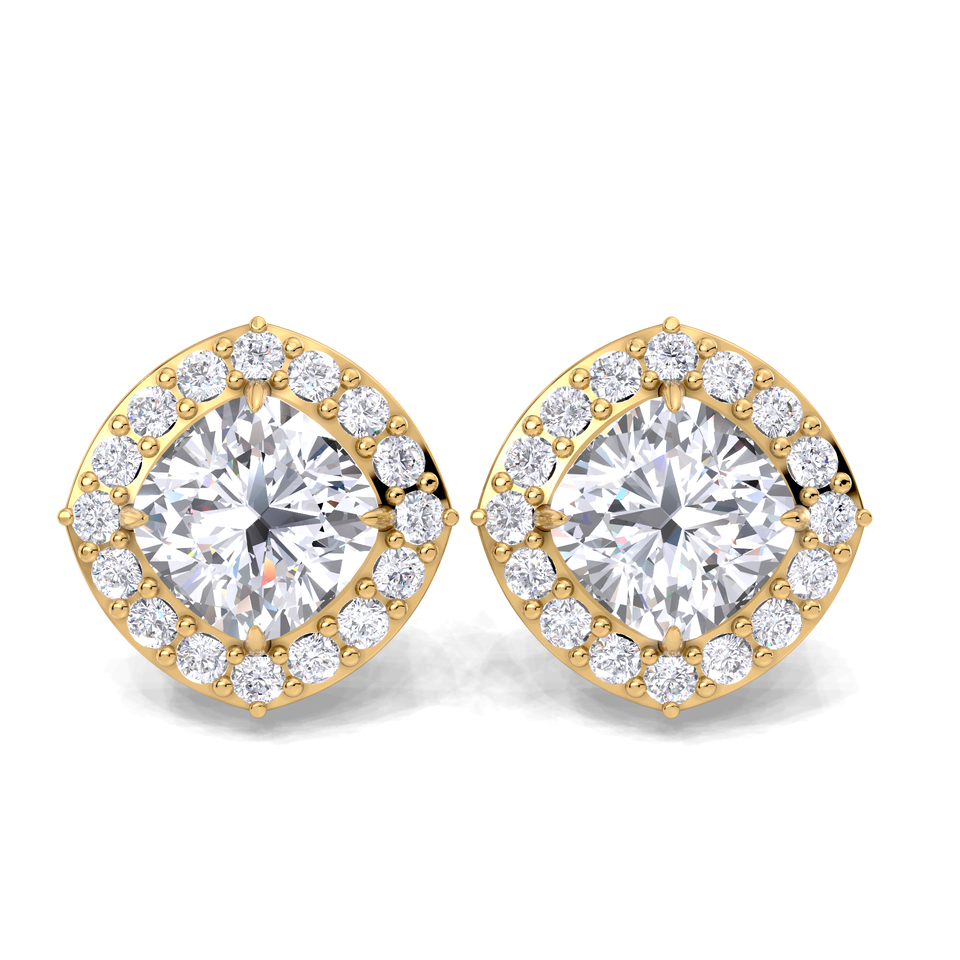 ต่างหูเพชรทรงคุชชั่น 1 กะรัต ประดับด้วยเพชรทรงกลมแบบมินิมอล ตัวเรือนทอง 9K สีเหลือง ขาว และโรสโกลด์
