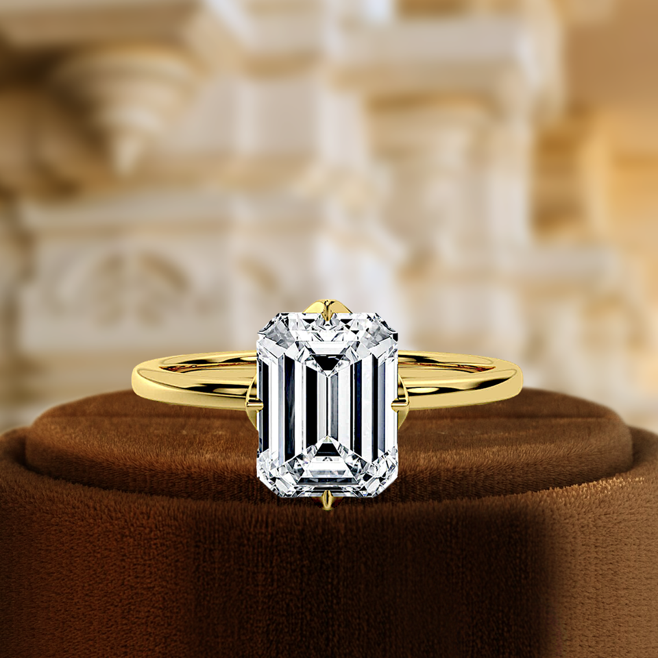 แหวนหมั้นเพชรทรงเอเมอรัลด์ 1 กะรัต เพชรเพาะเลี้ยงในห้องปฏิบัติการ แหวนทองคำขาว 14K แหวนเพชร ได้รับการรับรองจาก IGI แหวนวันครบรอบ